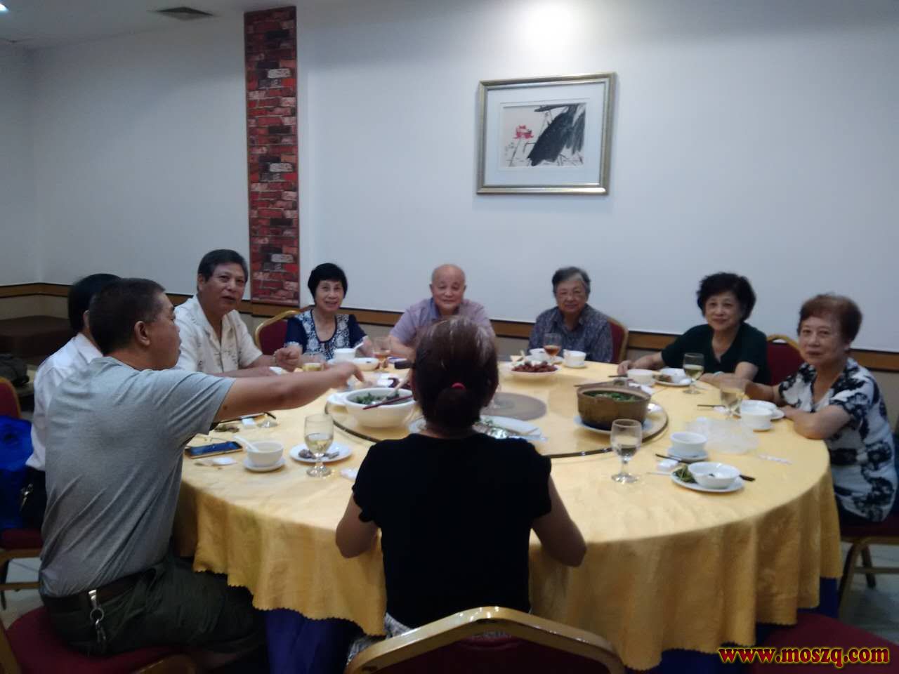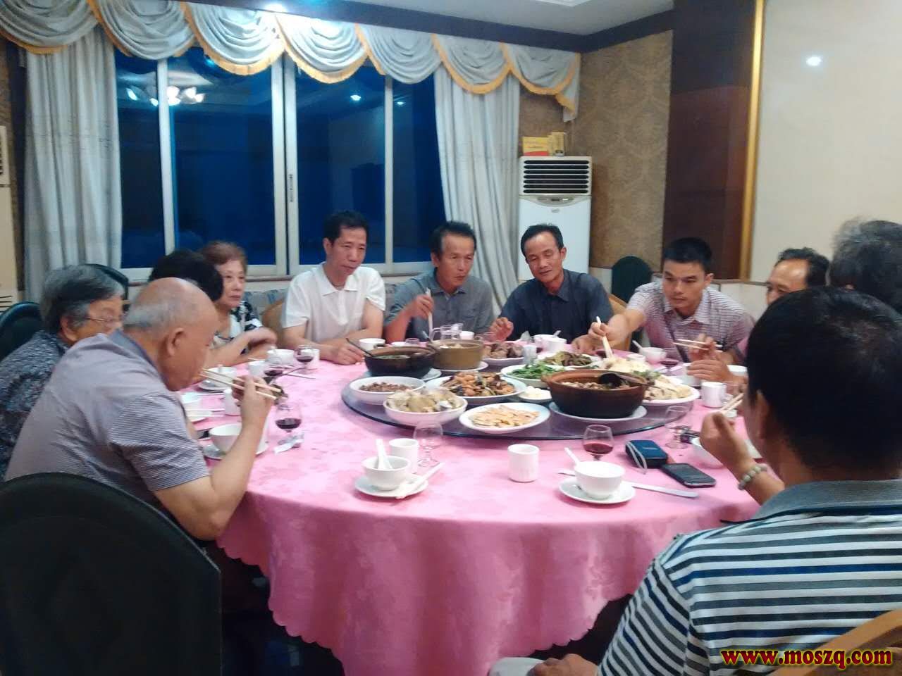 4,晚宴席设在副会长经营的好时光酒店三楼,会长莫新来在广卅办事,都打电话给理事,要以贵宾欵待。席间有莫健猷,莫鸿,莫经中,莫纯智,莫益西,莫介苏等宗亲。美酒佳肴,酒不醉人,人自醉。谈话欢快,畅所欲言,晚上又卡拉OK,把待客之热情推向高潮!参与者都一展歌喉,歌声回荡!